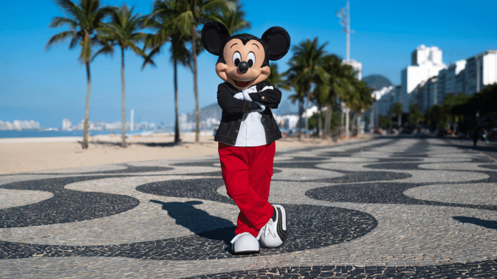 Ícone global da cultura pop, Mickey Mouse chamou atenção ao circular pelos principais pontos turísticos do Rio de Janeiro com um visual streetwear moderno, alinhado às tendências da Geração Z. A presença do personagem faz parte da campanha global “Mickey & Amigos”, que busca aproximar os clássicos da Disney da vida real, com foco em moda, música e autoexpressão.